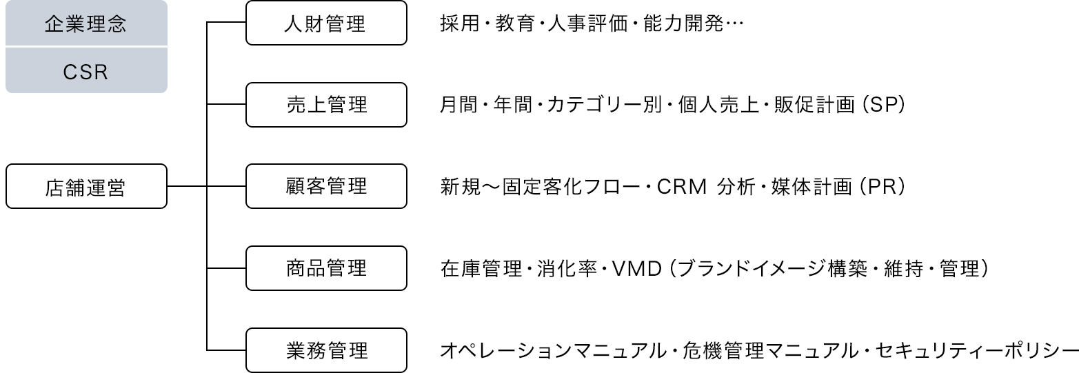 店舗運営を成功するための必要な条件として「人材管理」「売上管理」「顧客管理」「商品管理」などさまざまな要素が求められます。BRUSH は、店舗運営全般のノウハウを提供するとともに、今現在、どこにフォーカスすべきかサジェスチョンし改善に向けたサポートを行います。基本は、店長はじめ店舗のスタッフに対してのトレーニングを主軸にしておりますが、人事担当者・トレーニング担当者・営業担当者へのコンサルティングサービスも行っております。「企業体質を変えたい」など抜本的な改革を施したいとお考えの企業様には、会社のビジョン・企業理念やCSR に基づき、組織編成の再構築(企業デザイン)から着手することも可能でございます。